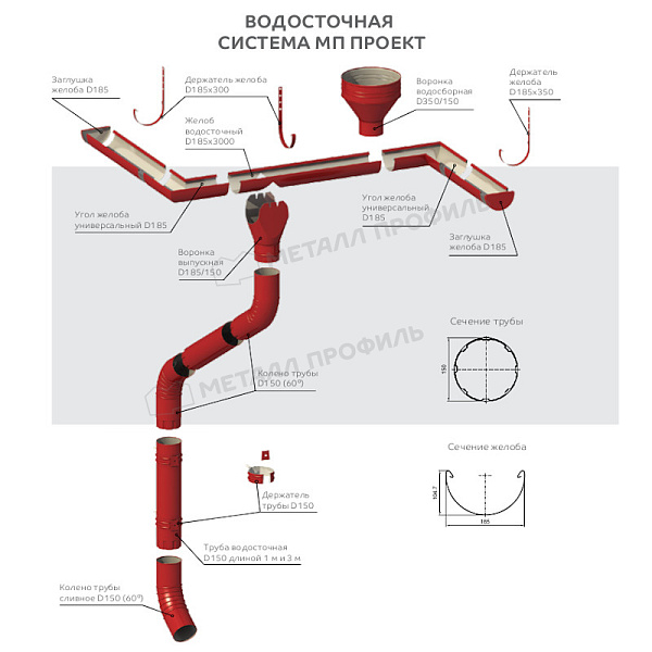 Желоб водосточный Металл Профиль ПРОЕКТ D185х3000 Ral 7024 в Переславль-Залесском